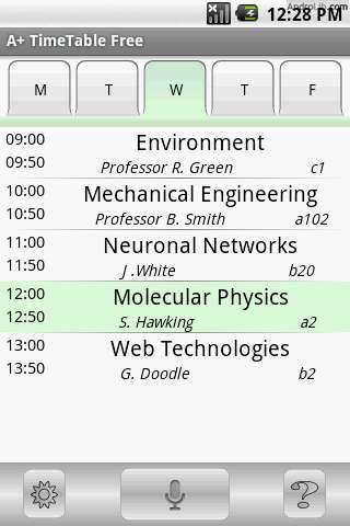 A+ TimeTable - приложение для создания расписаний на уроков на каждый день. Записывается время начала и конца урока, фамилия преподавателя и другое.