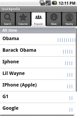 Quickpedia - это википедия для вашего смартфона. Приложение позволяет просматривать текущие события, статьи, лучшие страницы, осуществлять поиск.