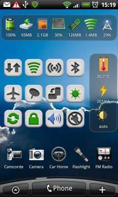 Elixir- приложение с виджетами об информации системы. отображается информация о: времени работы аккумулятора, уровне загрузки процессора,мобильных сетях,сервисе определения местоположения(GPS),Bluetooth,синхронизации, памяти, внутренней и внешней памяти(SD-карты),дисплее.
