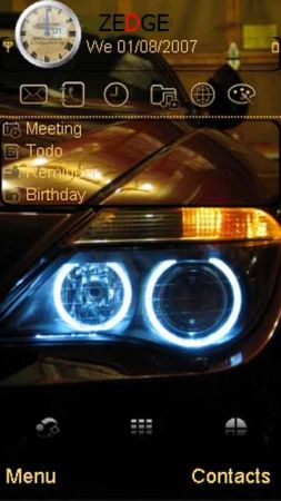 Bmw M6 – мечта многих, но доступна не всем. В качестве фонового рисунка было выбрано изображение не полной бэхи, а только крыла и фары, собственно вышло очень оригинально и стильно, смотрится эффектно. Иконки заменены не все, читаемость средненькая (из-за фона).
